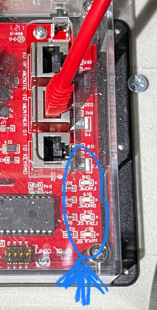 Whichever light is not lit once the board is getting power (many lights all over the board), the important 4 lights next to the Ethernet ports will tell you which arm is problematic (a dark r-home, r-pulse LED light means the rear arm is broken, f-home, f-pulse means front).