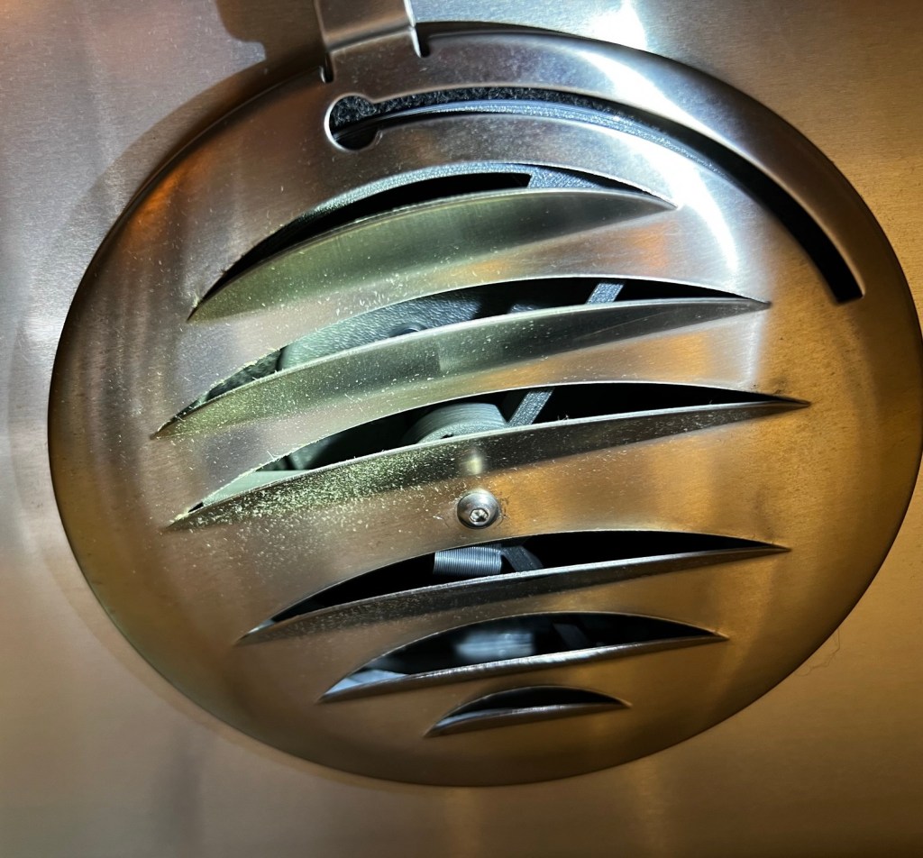 In the picture below, only 3 thin structural pieces radiate out from the center. The entire duct opening is no longer restricted except for the outer stainless steel vent cover.