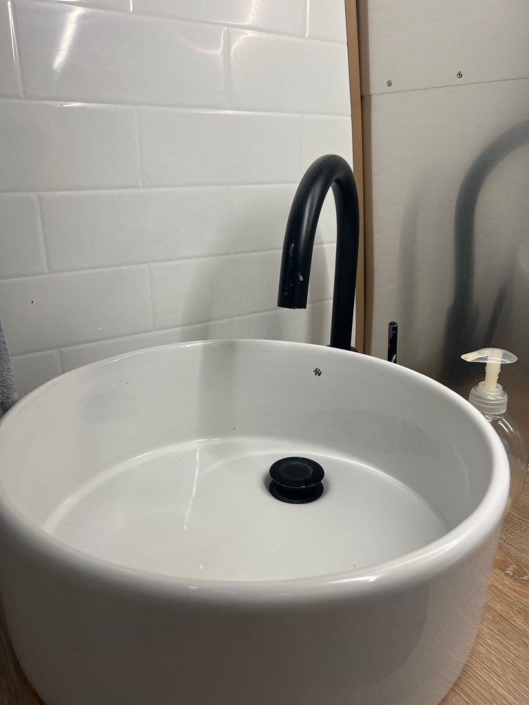 The free-flowing bathroom faucet and sink empties into the black water tank which seemed to fill the black tank quickly with frequent hand washing.